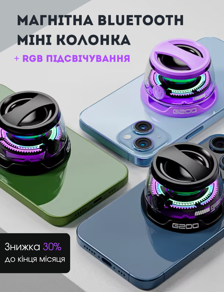 це бездротовий динамік компактний Bluetooth-динамік із міцною магнітною основою, що дозволяє легко прикріпити його до телефону або будь-якої металевої поверхні поблизу для зручності використання рук. Ідеально підходить для любителів музики в дорозі