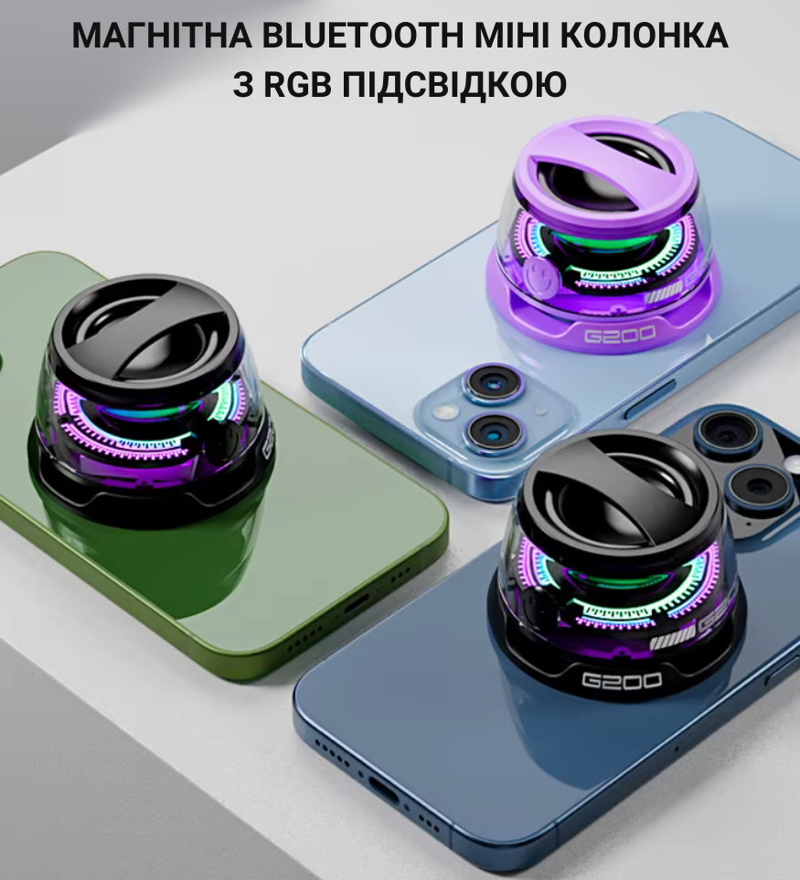 це бездротовий динамік компактний Bluetooth-динамік із міцною магнітною основою, що дозволяє легко прикріпити його до телефону або будь-якої металевої поверхні поблизу для зручності використання рук. Ідеально підходить для любителів музики в дорозі